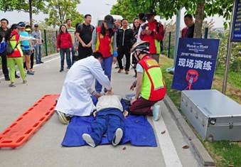 據(jù)了解,本次賽事在賽程中設(shè)有9個(gè)醫(yī)療點(diǎn),每隔3公里即設(shè)立一個(gè),并將沿運(yùn)動(dòng)員跑步路線安排11臺(tái)救護(hù)車、15個(gè)賽道急救組、65名醫(yī)護(hù)人員和135名醫(yī)療志愿者(其中包括40名急救跑者)。除此之外,賽事組委會(huì)還在花都區(qū)人民醫(yī)院、中西醫(yī)結(jié)合醫(yī)院開通了綠色通道并成立急救應(yīng)急小組,形成了場內(nèi)、院內(nèi)一體化的醫(yī)療救助系統(tǒng),為賽事醫(yī)療提供全方位支持和保障。