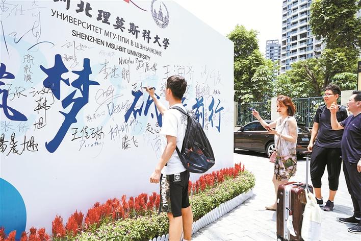 4日當(dāng)天,為了給2018級(jí)新生和家長(zhǎng)提供良好的服務(wù)和環(huán)境,學(xué)校設(shè)置了資格查驗(yàn)接待站、繳費(fèi)服務(wù)站、“綠色通道”接待站、新生親友休息區(qū)等接待站,極大方便了學(xué)生辦理入學(xué)手續(xù)。早上6時(shí)30分,第一輛迎接新生的巴士就從校園駛往深圳北站和深圳機(jī)場(chǎng)。教學(xué)樓隨處可見(jiàn)中俄兩國(guó)國(guó)旗以及設(shè)計(jì)精美的中、俄、英三種語(yǔ)言的海報(bào),凸顯了學(xué)校國(guó)際化特色。