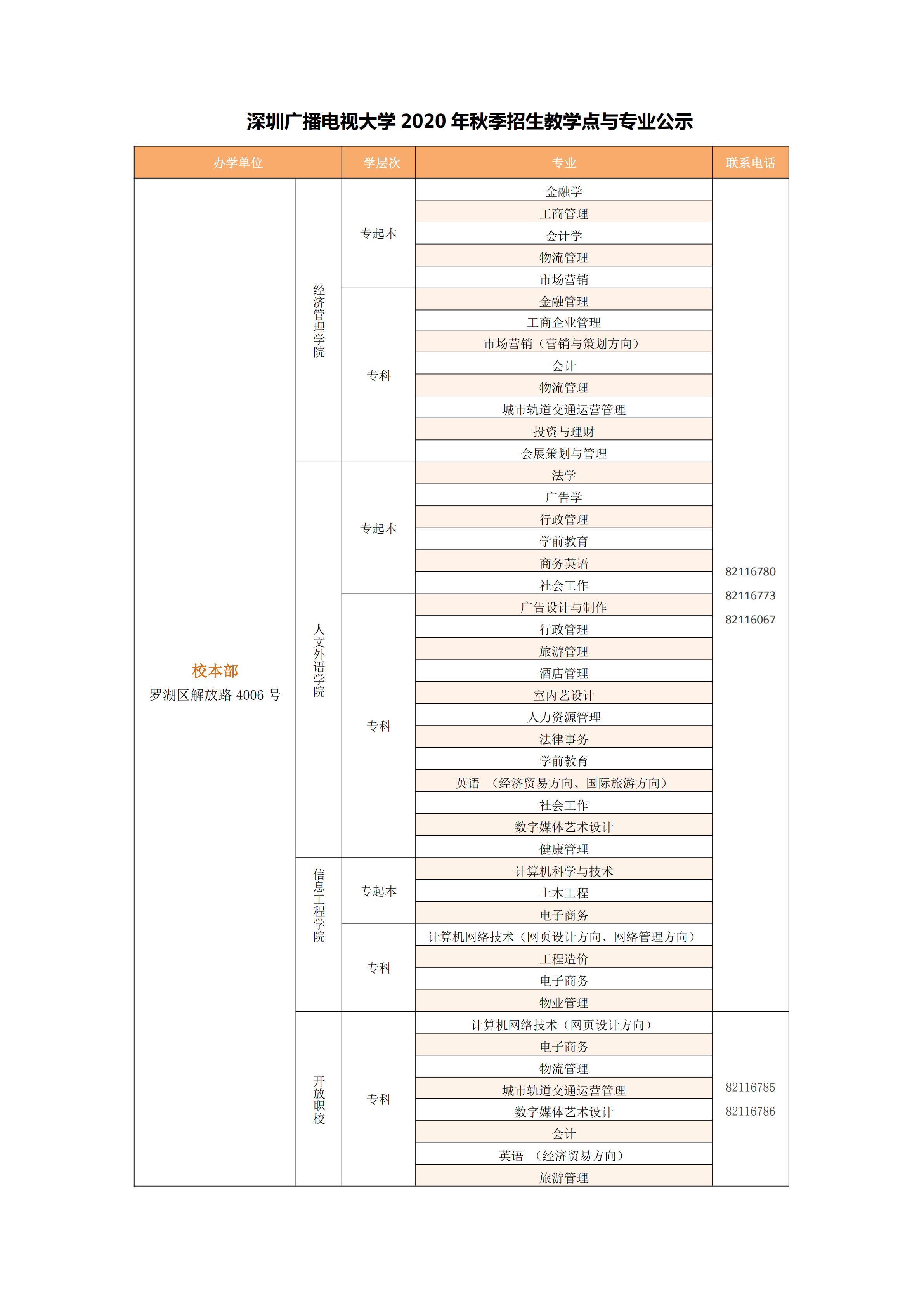 特別聲明:深圳廣播電視大學【國家開放大學(深圳)】是唯一在深圳地區(qū)招收開放教育??破瘘c本科、專科學生的公辦高校。除學校公示的教學點外,其它任何以國家開放大學或廣播電視大學名義在深圳市范圍內(nèi)招生的機構和個人均屬違規(guī)招生,報讀者謹防受騙。監(jiān)督電話:0755-82116067。
