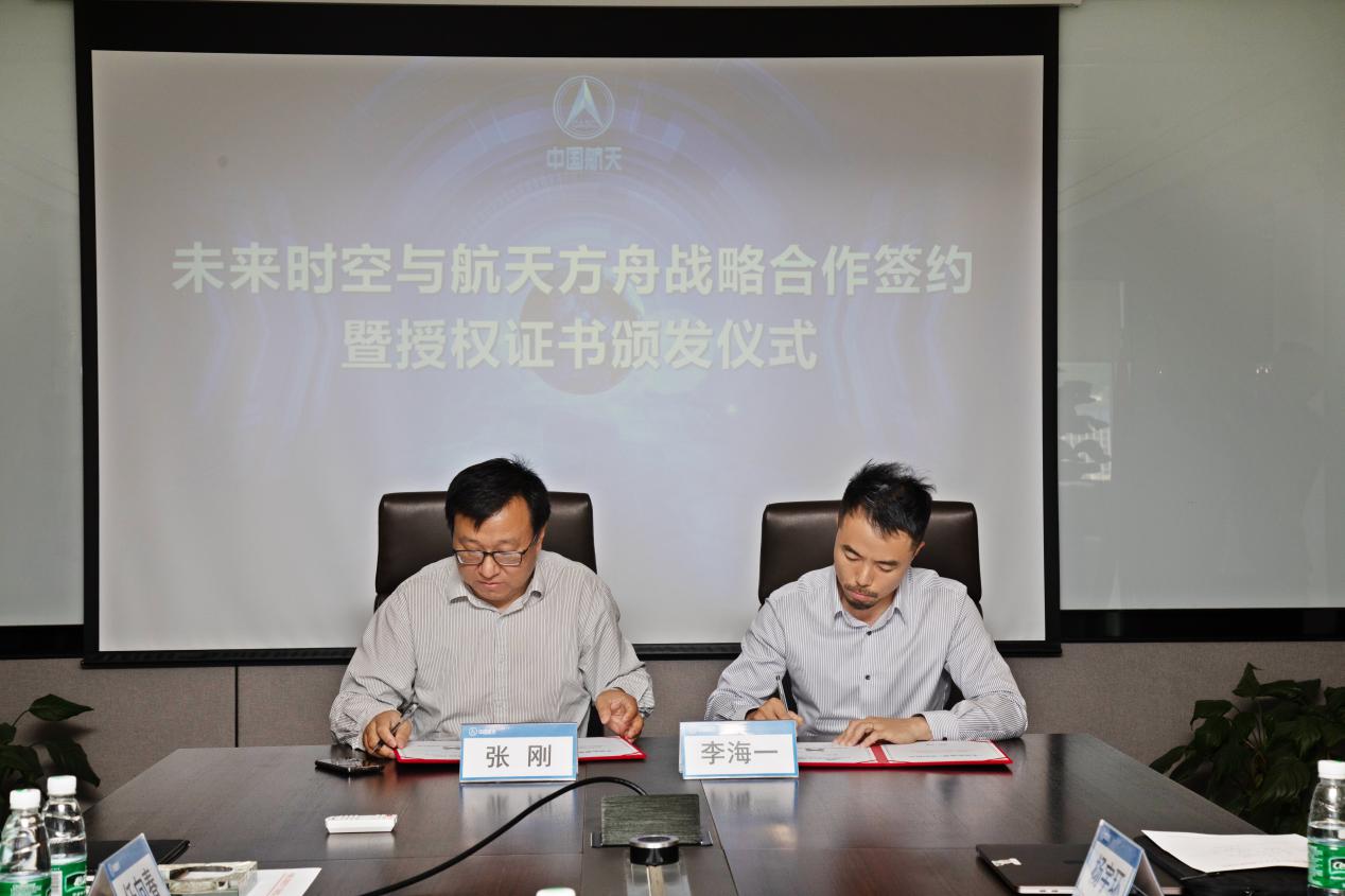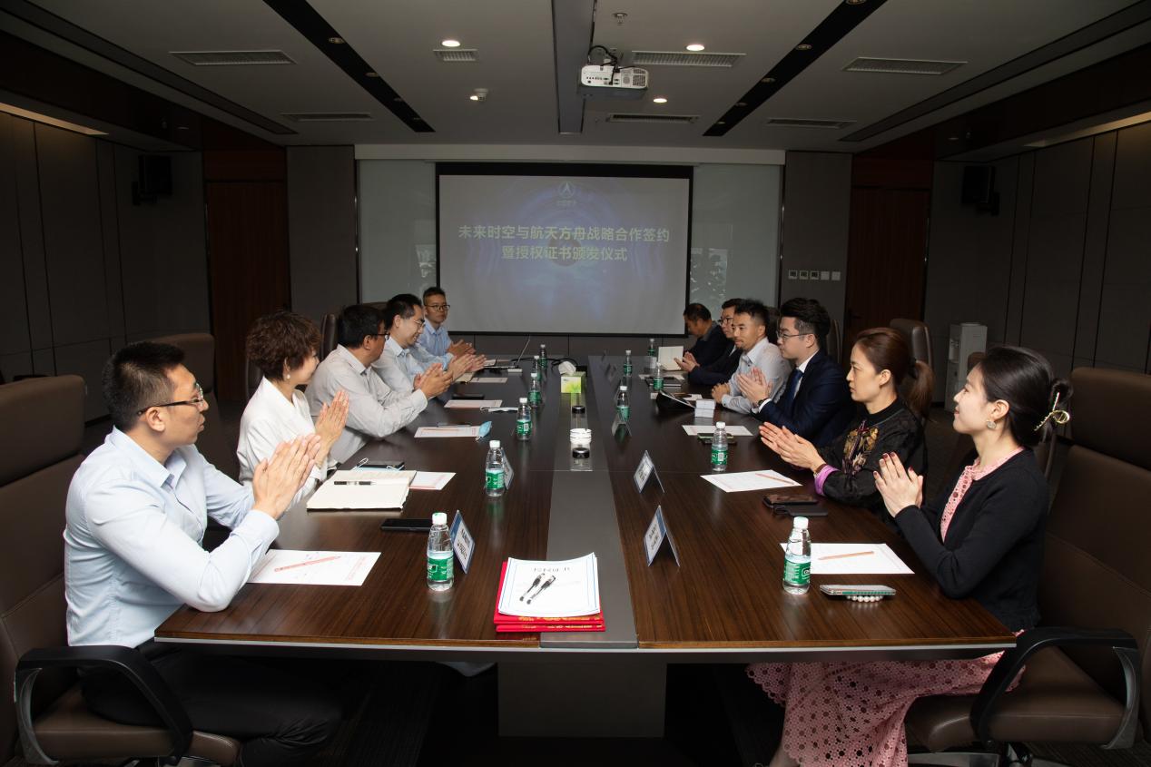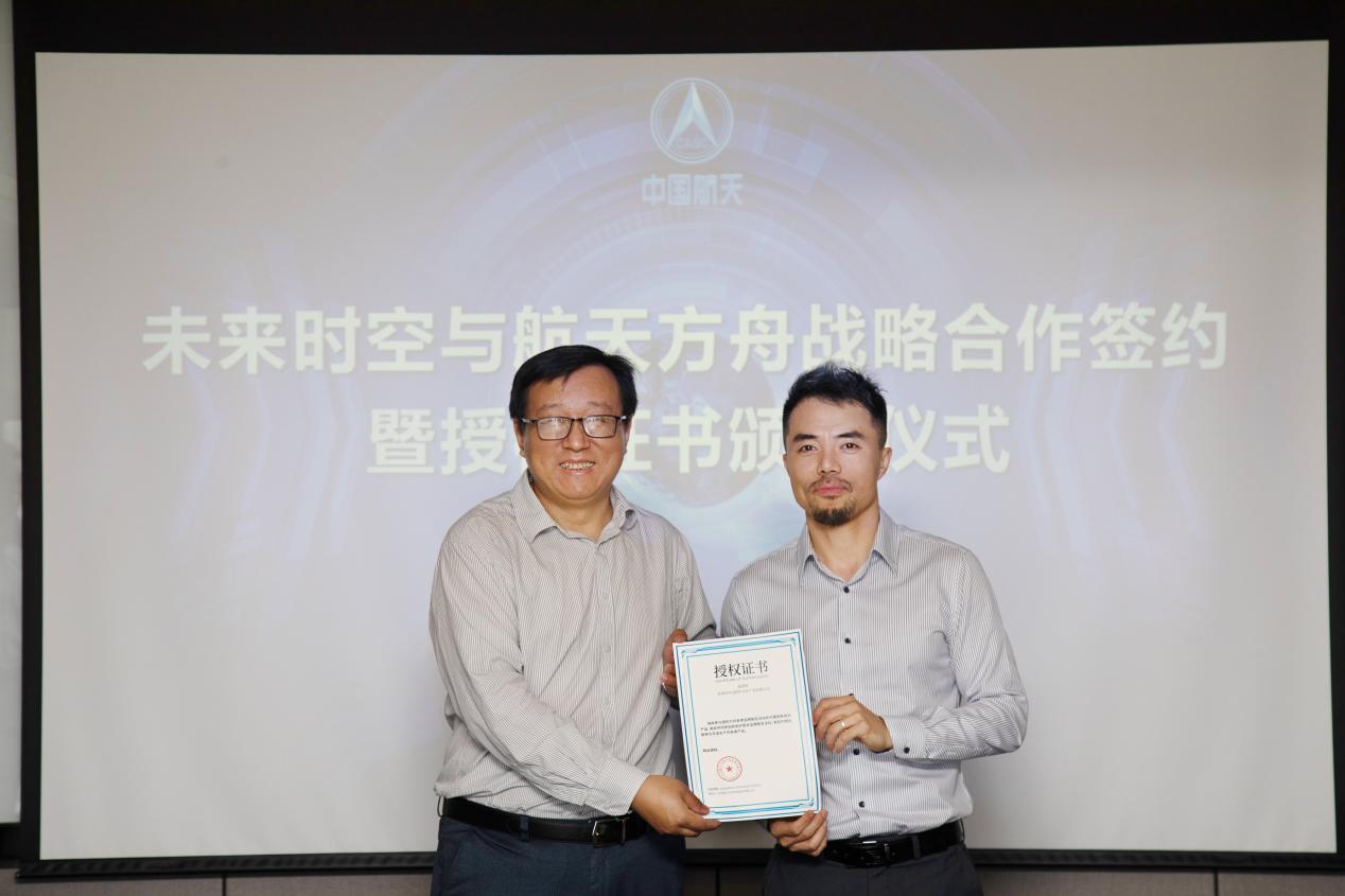 見圳客戶端·深圳新聞網(wǎng)2021年5月31日訊 (記者 陳彬)為深入推進航天科技文化技術在社會生活、人民健康、科普教育、素質(zhì)教育和文化產(chǎn)業(yè)等領域的成果轉(zhuǎn)化和廣泛應用,在中國航天系統(tǒng)科學與工程研究院有關領導的關心幫助下,未來時空(深圳)文化產(chǎn)業(yè)有限公司和北京航天方舟空間技術有限公司就航天文創(chuàng)產(chǎn)品開發(fā)、航天康養(yǎng)項目建設、航天科普教育及商業(yè)化航天器應用等方面達成了全面合作,于5月28日上午在北京簽署戰(zhàn)略合作協(xié)議并頒發(fā)授權(quán)證書。
