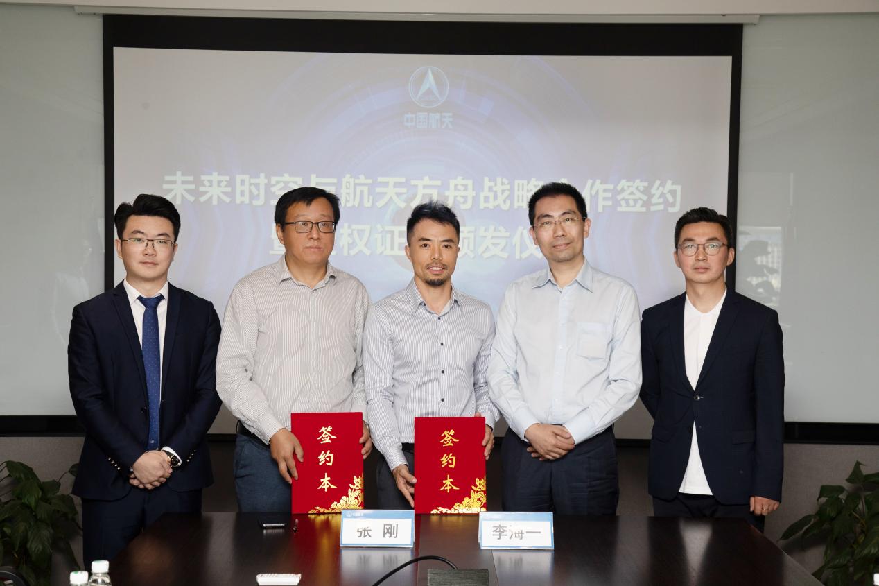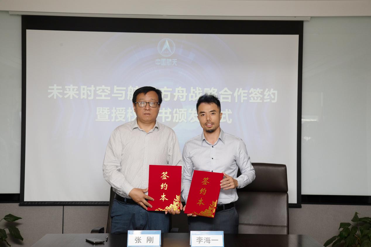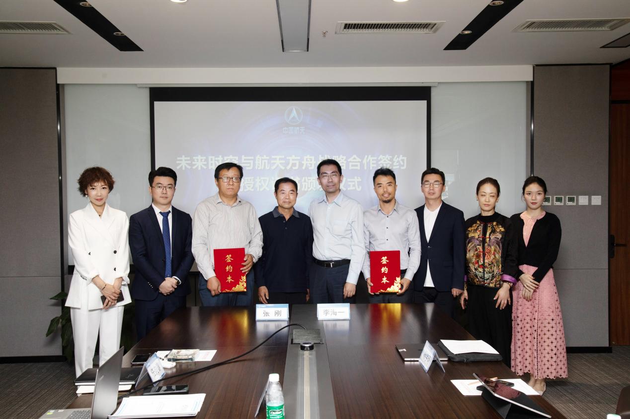北京航天方舟空間技術有限公司董事長張剛,未來時空(深圳)文化產(chǎn)業(yè)有限公司創(chuàng)始人兼董事長李海一、北京航天方舟空間技術有限公司總經(jīng)理孫愻,未來時空(深圳)文化產(chǎn)業(yè)有限公司聯(lián)合創(chuàng)始人陳欣泉、楊宇環(huán)等出席本次儀式。