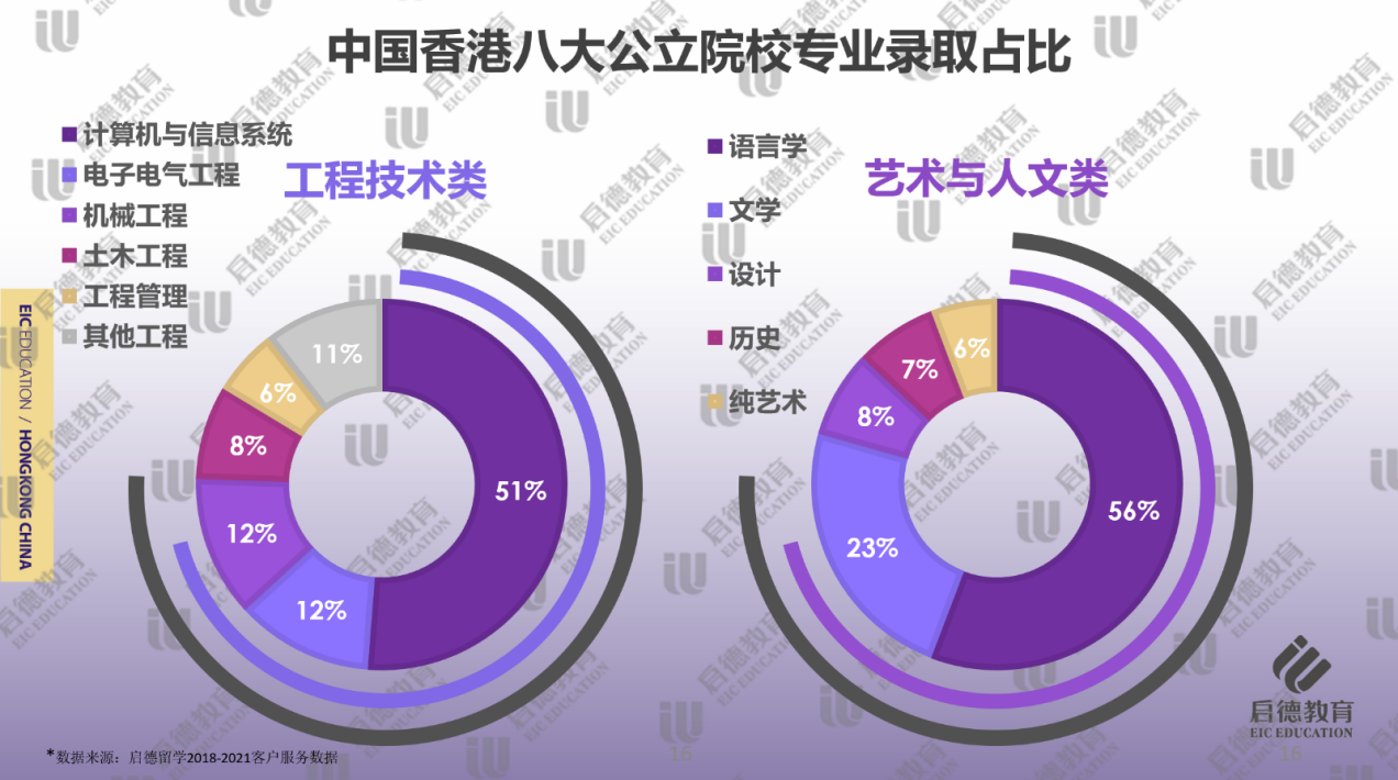 計(jì)算機(jī)與信息系統(tǒng)(51% )、電子電氣工程(12% )和機(jī)械工程(12% )在工程技術(shù)類(lèi)學(xué)科中錄取占比最多。作為金融中心的香港,銀行或金融機(jī)構(gòu)對(duì)于復(fù)合型人才的需求非常大,除了港校的工程學(xué)院設(shè)置計(jì)算機(jī)與信息系統(tǒng)專業(yè)外,很多學(xué)校都有商學(xué)院和工程學(xué)院聯(lián)合授課的商務(wù)資訊系統(tǒng)類(lèi)專業(yè)。得益于深圳高科技產(chǎn)業(yè)對(duì)通信方面人才的需求量,去香港就讀電子電氣工程專業(yè)的學(xué)生也在增多,除了電子工程、通信工程弱電專業(yè)以外,香港大學(xué)和香港理工大學(xué)還設(shè)有針對(duì)強(qiáng)電的相關(guān)課程,學(xué)生畢業(yè)后可回到內(nèi)地從事電力系統(tǒng)的相關(guān)工作。QS排名前100的5所名校均設(shè)置機(jī)械工程專業(yè),工程類(lèi)專業(yè)的錄取難度相對(duì)略低,學(xué)生可獲得更大的入讀名校的機(jī)會(huì)。