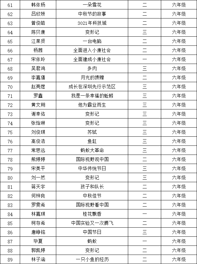 自2021年1月,活動(dòng)征稿啟動(dòng)以來,獲得了深圳市廣大中小學(xué)生、教師、文學(xué)愛好者的熱烈響應(yīng)積極參與,吸引了深圳百余所學(xué)校的上萬人關(guān)注報(bào)名?,F(xiàn)公布龍華區(qū)丹堤實(shí)驗(yàn)學(xué)校晉級(jí)復(fù)賽名單如下: