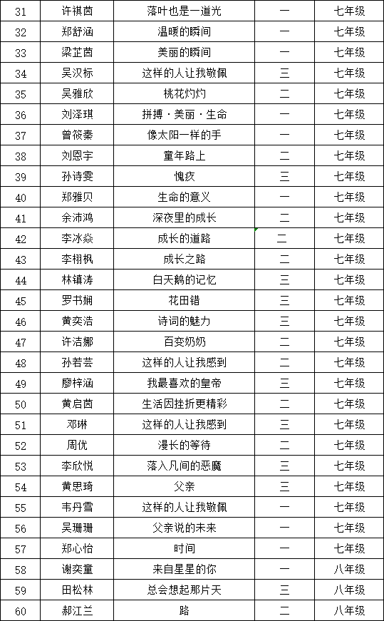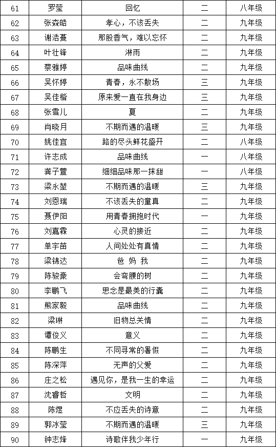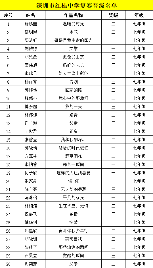 自2021年1月,活動(dòng)征稿啟動(dòng)以來,獲得了深圳市廣大中小學(xué)生、教師、文學(xué)愛好者的熱烈響應(yīng)積極參與,吸引了深圳百余所學(xué)校的上萬(wàn)人關(guān)注報(bào)名?,F(xiàn)公布深圳市紅桂中學(xué)晉級(jí)復(fù)賽名單如下: