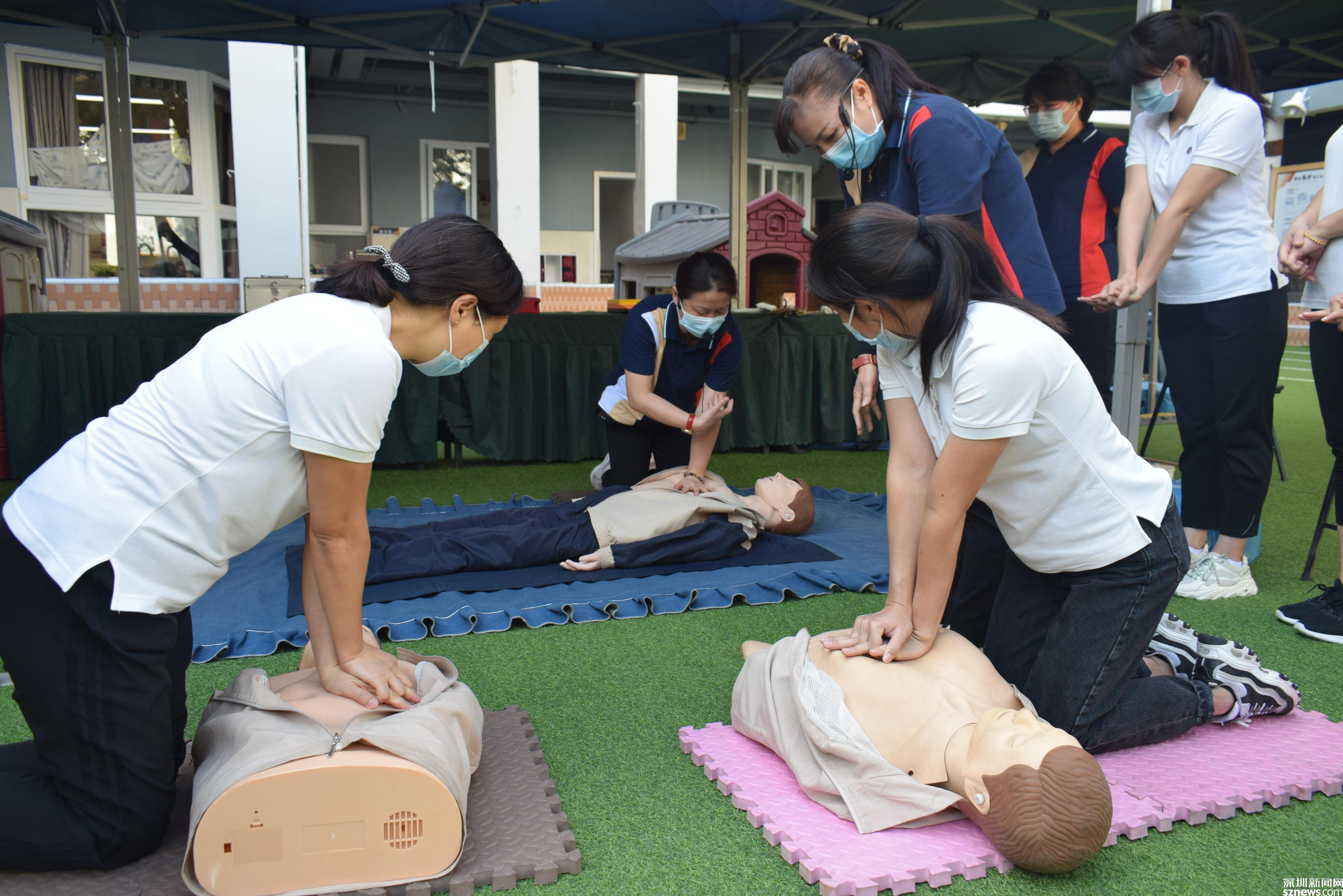 大鏟社區(qū)還組織全園教職工進(jìn)行心肺復(fù)蘇訓(xùn)練和骨折包扎訓(xùn)練。教職工們在安全老師一對一指導(dǎo)與糾正下,反復(fù)訓(xùn)練,基本掌握了心肺復(fù)蘇和骨折包扎步驟及動作要點。