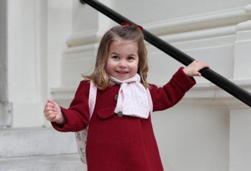 夏洛特公主拍幼兒園入學照 在臺階上凹造型