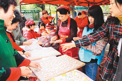 四季花城社區(qū)“奶奶廚房幫”為居民包餃子