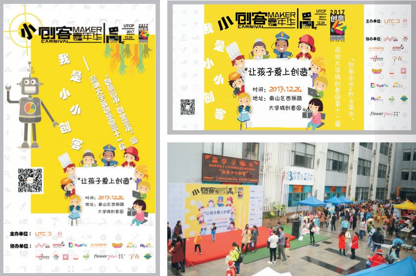 深圳大學(xué)城創(chuàng)意園主辦,活動(dòng)以創(chuàng)意街市+創(chuàng)業(yè)集市的形式,展示、銷售孩子的創(chuàng)意產(chǎn)品,并結(jié)合專業(yè)創(chuàng)客實(shí)驗(yàn)室、3D打印、增強(qiáng)/虛擬現(xiàn)實(shí)、機(jī)器人等科技、技術(shù),讓孩子們?cè)谳p松投入的氛圍中體驗(yàn)最前沿的科技產(chǎn)品和創(chuàng)客項(xiàng)目?!皠?chuàng)新”、“實(shí)踐”、“分享”,活動(dòng)旨在培養(yǎng)孩子們的動(dòng)手創(chuàng)作能力、社會(huì)交往技能、團(tuán)隊(duì)協(xié)作、實(shí)踐技巧、集體榮譽(yù),拓展孩子們的創(chuàng)新創(chuàng)意思維,讓孩子愛上創(chuàng)造,逐步提升孩子的綜合能力,為將來更好地適應(yīng)社會(huì)的發(fā)展趨勢(shì)打好基礎(chǔ)。