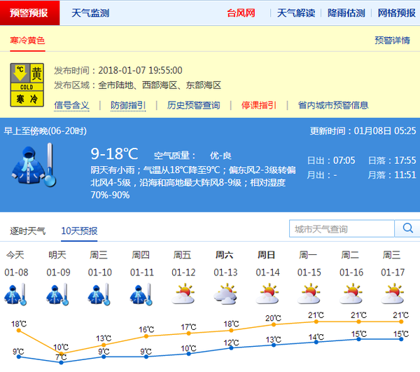 深圳新聞網(wǎng)1月8日訊(記者 何暢)據(jù)深圳市氣象臺8日5:25發(fā)布,深圳預(yù)計8-9日受強(qiáng)冷空氣影響,陰天有小雨,氣溫逐漸下降,8日傍晚前后降至9℃,北風(fēng)加大,沿海和高地最大陣風(fēng)8-9級左右,9日最低氣溫降至7℃左右,北部及山區(qū)再低1-2℃;展望10日起雨停,轉(zhuǎn)多云到晴,空氣干燥,早晚寒冷。