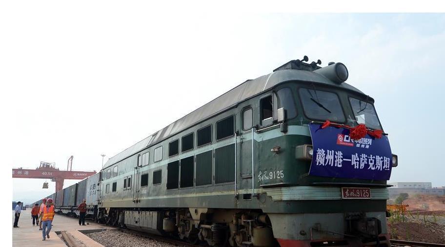 2017年7月27日,在江西省贛州市南康區(qū)贛州港,“贛州港至哈薩克斯坦”中歐班列等待發(fā)車。 來源:新華網(wǎng)
