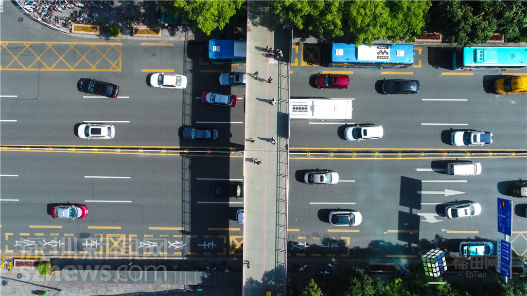 《飛閱福田》的第一站來到了備受矚目的華強(qiáng)北。華強(qiáng)北是中國電子第一街,也是深圳引以為豪的一張名片,這里每天車來人往,交通繁忙。位于華強(qiáng)北片區(qū)西部、深南中路上的中航天橋就是華強(qiáng)北一處重要的交通樞紐。2018年2月深圳市交通運(yùn)輸委員會(huì)福田交通運(yùn)輸局發(fā)布《中航天橋及周邊空中慢行系統(tǒng)工程(規(guī)劃及設(shè)計(jì))》招標(biāo)公告,公告中提出,深南路中航天橋設(shè)施簡陋,存在無遮風(fēng)避雨頂棚,無電扶梯,結(jié)構(gòu)老化等情況,已不符合福田區(qū)打造國際城市的目標(biāo)及廣大市民對(duì)過街品質(zhì)的需求,須盡快對(duì)該天橋拆除重建,新建天橋上設(shè)置綠化、頂棚以及電扶梯,提升天橋景觀藝術(shù)及交通品質(zhì)。