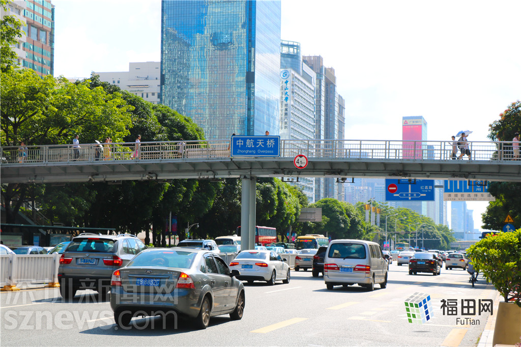 中航天橋位于深南大道上,是華強(qiáng)北過了中心公園后唯一一個(gè)比較標(biāo)志性的構(gòu)筑物