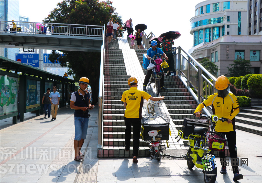 天橋上會有很多電動車、自行車通過,上下很不方便。