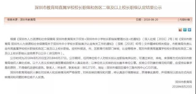 備受關(guān)注的深圳校長職級制改革有了新進展。8月20日,深圳市教育局官網(wǎng)對直屬學(xué)校校長職級和各區(qū)二級及以上校長職級認定結(jié)果進行公示,共有371人。據(jù)了解,這是該項改革啟動后首次集中公示。各區(qū)三級及以下正、副校長的職級,由區(qū)評定委員會負責評定,目前也都在各區(qū)教育局官網(wǎng)公示中。根據(jù)統(tǒng)計,此次深圳全市評定職級的正、副校長共1297人。