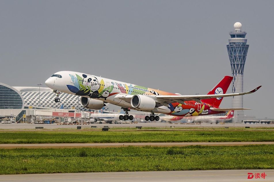 組圖:川航A350飛機首秀深圳 “熊貓彩繪”驚艷深圳機場
