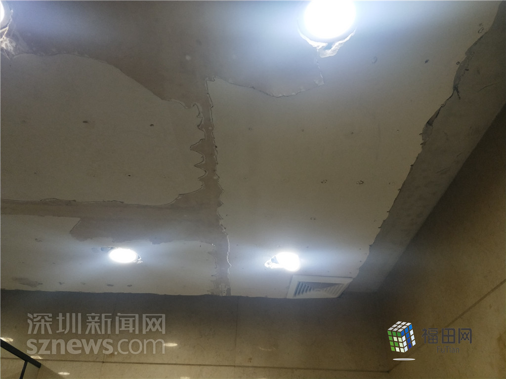 購(gòu)物公園負(fù)一樓公廁由于使用年代較久,天花板破舊。