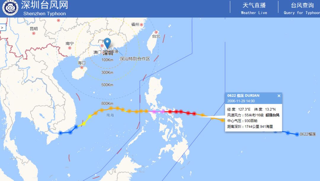 臺風(fēng)“榴蓮”(泰國命名)是2006年11月30日在菲律賓登陸的超強臺風(fēng),雖然對我國沒有什么風(fēng)雨影響,但在菲律賓卻造成了上百人死亡、失蹤以及近100萬人直接受災(zāi),并且其二次登陸也給越南造成了上百艘船艇沉沒。