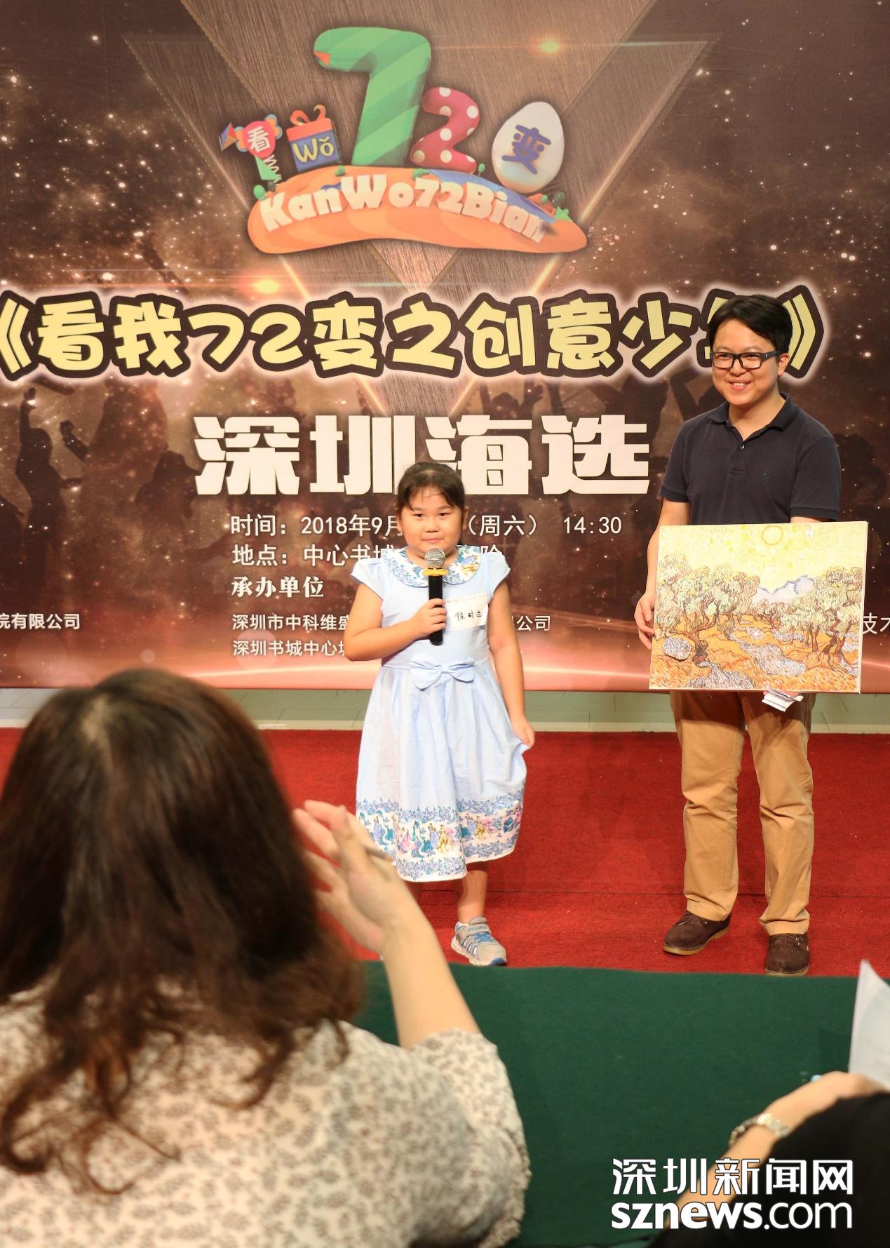 據(jù)了解,為了提升全國科普日的影響力,提高中小學生對學習科學、研究科學的興趣,增強青少年動手能力、觀察能力和創(chuàng)造能力,培養(yǎng)創(chuàng)新人才,“看我72變”之創(chuàng)意少年深圳賽區(qū)海選活動決定在中心書城舉行?!翱次?2變”之創(chuàng)意少年是央視一檔以想象力和創(chuàng)造力為核心的節(jié)目,學生用藝術(shù)的表達方式電視化呈現(xiàn)的“少兒創(chuàng)意秀”欄目; 它 寓教于樂, 是 集思想性、藝術(shù)性、觀賞性統(tǒng)一的少兒品牌媒體產(chǎn)品。節(jié)目旨 在 搭建一個發(fā)現(xiàn)、展示和培養(yǎng)創(chuàng)意少年的平臺。