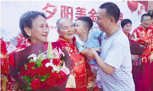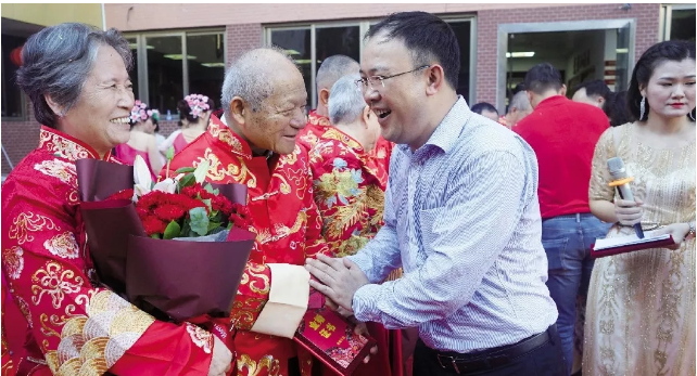 老人們雖然大多語(yǔ)言拘謹(jǐn),不少羞于表達(dá)愛意,但幾十年的風(fēng)雨同行,甘苦與共,相濡以沫,他們已用實(shí)際行動(dòng)踐行“執(zhí)子之手、與子偕老”的不變承諾。他們對(duì)婚姻的堅(jiān)守,彼此不離不棄,讓人為之動(dòng)容、深受感染,獲頒金婚證書。