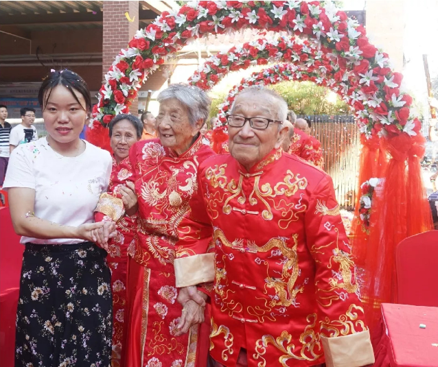蛇口街道南水社區(qū)居民耿玉璽與王月鳳兩位老人已經(jīng)攜手走過69年,一直有個(gè)遺憾藏在心里——兩人年輕時(shí)沒有舉辦過婚禮,連一張結(jié)婚照片都沒有。日前,二老的遺憾得到彌補(bǔ),愿望得以實(shí)現(xiàn)。南水社區(qū)黨委以開展民生微實(shí)事為契機(jī),為包括耿玉璽與王月鳳夫婦在內(nèi)的社區(qū)15對(duì)老年夫婦舉辦了一場(chǎng)別開生面的夕陽(yáng)美集體金婚慶典活動(dòng)。眾多嘉賓及老人的親朋好友、子女兒孫到場(chǎng)見證,獻(xiàn)上掌聲和祝福。