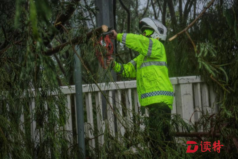 面對(duì)強(qiáng)大的臺(tái)風(fēng),艾力軍感到焦急又無(wú)奈。“真的是路兩旁的樹(shù)一棵棵的在我眼前倒下,疏通不完的排水口,清理不完的倒樹(shù)?!卑妼?duì)記者說(shuō)。即便如此,他還是帶領(lǐng)隊(duì)員不斷的在風(fēng)雨中努力嘗試不讓路被積水、倒樹(shù)堵死,一次次下車排除險(xiǎn)情。