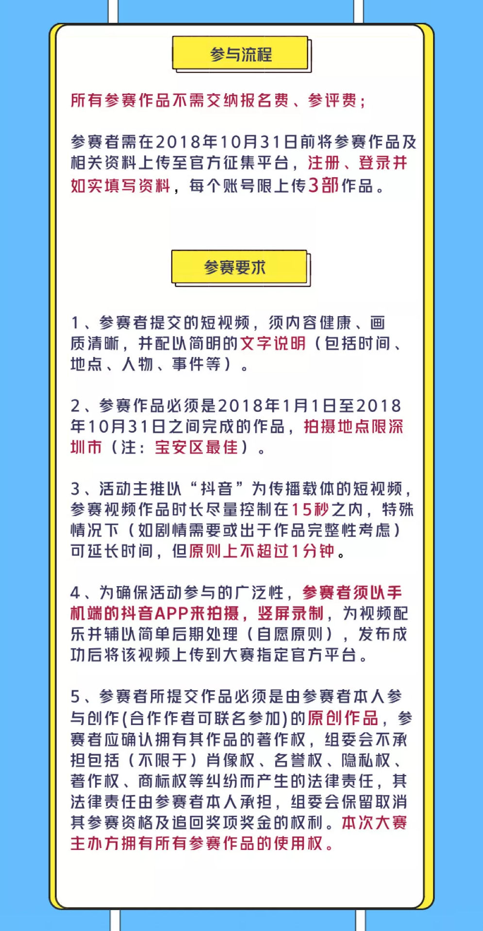 必須為2018年1月1日-10月31日期間拍攝的原創(chuàng)作品