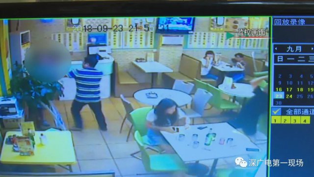 在9點(diǎn)50分左右,羅先生帶著女兒進(jìn)入餐廳后,這名黑色短袖男子仍然沒有停止抽煙,在雙方發(fā)生口角后,這名黑色短袖男子更是直接動(dòng)手,不但抄起身邊的物品砸向羅先生,還試圖沖上前毆打羅先生。