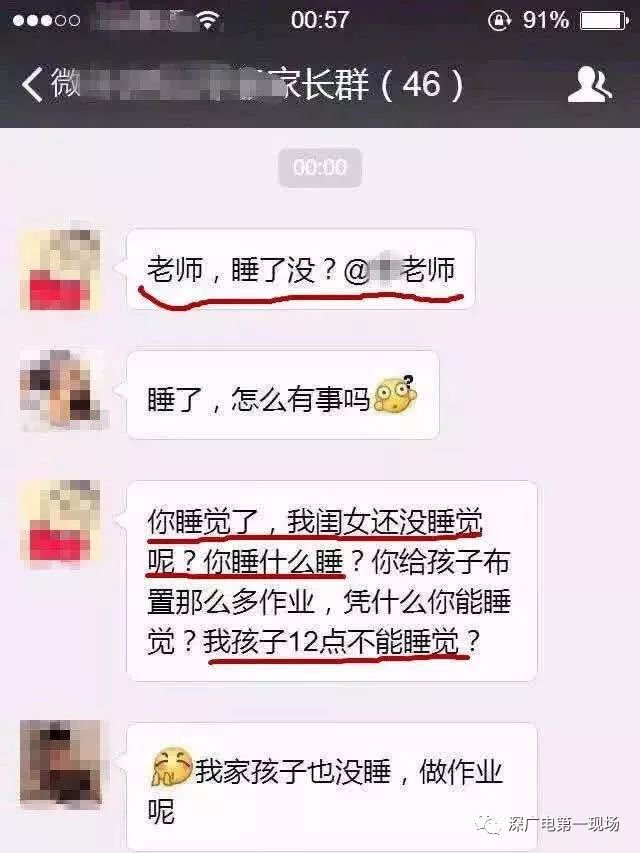微信的內(nèi)容是這樣的,家長(zhǎng)問(wèn):"老師,睡了嗎?"老師看了之后回了句"睡了,怎么有事嗎?"沒(méi)想到家長(zhǎng)的回答是"你睡覺(jué)了,我閨女還沒(méi)睡覺(jué)呢?你睡什么睡?你給孩子布置那么多作業(yè),憑什么你能睡覺(jué)?我孩子12點(diǎn)不能睡覺(jué)?"