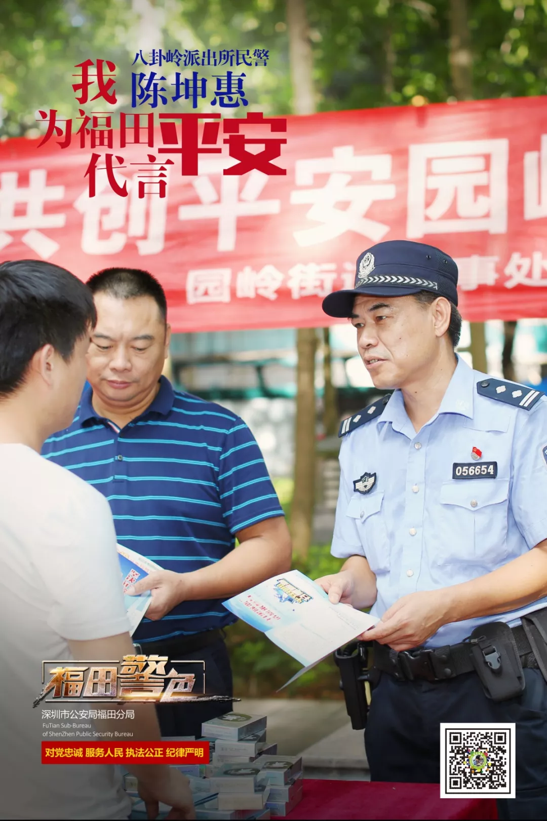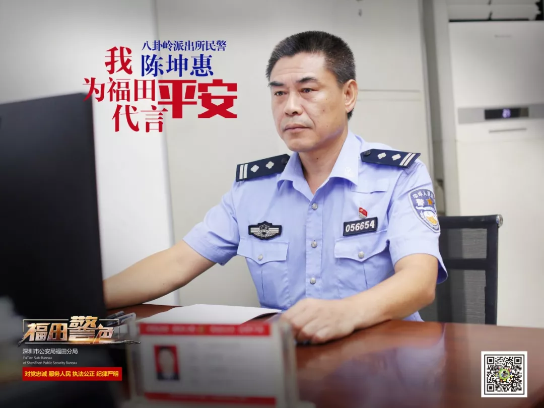 陳坤惠,48歲,1995年1月加入福田警隊(duì)。現(xiàn)為八卦嶺派出所華林社區(qū)民警,曾榮獲優(yōu)秀共產(chǎn)黨員1次,優(yōu)秀公務(wù)員2次。