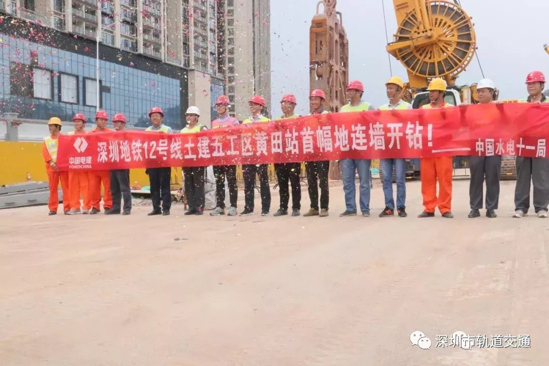 伴隨著旋挖鉆機的轟鳴聲,黃田站樁板墻首根灌注樁成功開鉆,打響了深圳地鐵12號線土建五工區(qū)工程主體結構施工大戰(zhàn)的第一槍,標志著該工程完成前期工程,正式拉開了主體工程建設的帷幕。