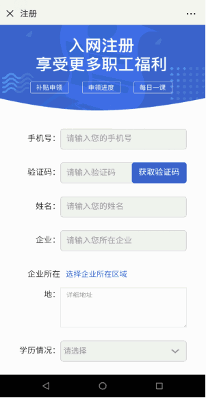 第二步:進(jìn)入注冊(cè)頁面,使用手機(jī)號(hào)及驗(yàn)證碼注冊(cè)/登陸,選擇相應(yīng)的補(bǔ)貼(“提升學(xué)歷”或“提升技能”)項(xiàng)目;