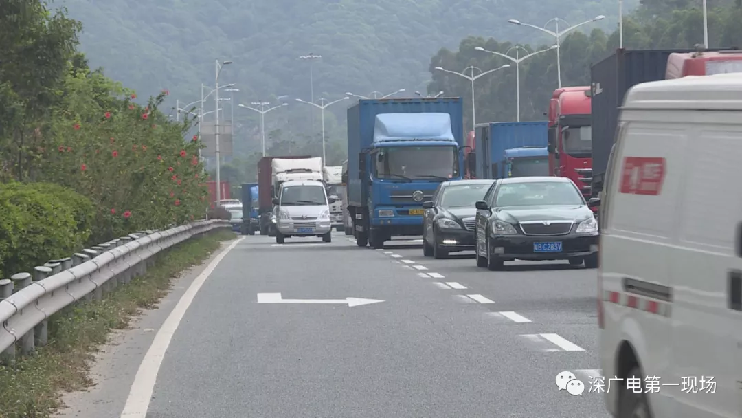 從梅觀路進(jìn)梅林關(guān)往西方向,轉(zhuǎn)南坪快速路的輔道,是一條對貨車開放的路段。本來出口有兩條車道,而最近這兩車道變成了單車道,導(dǎo)致路況十分擁堵。
