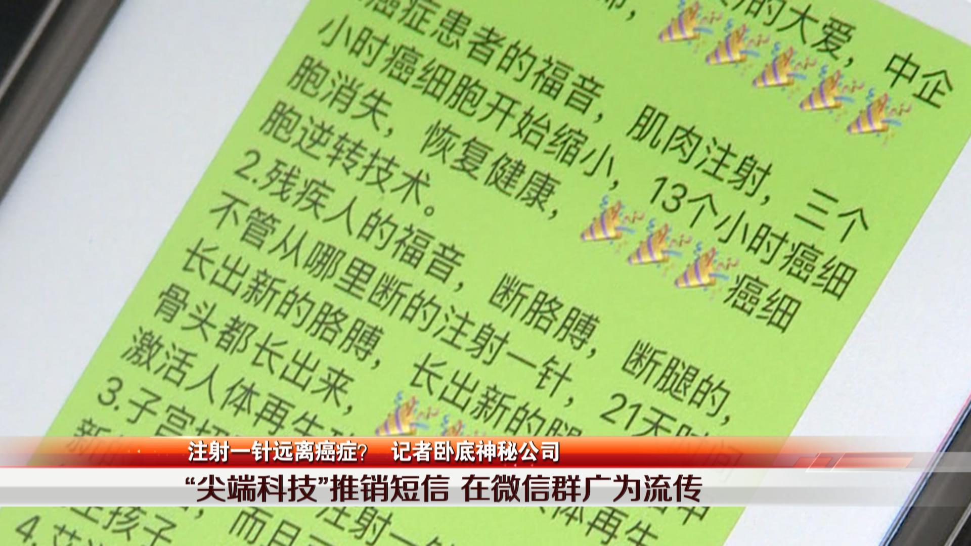 “先機,先機,改變?nèi)祟惷\的生物科技”,這條號稱改變患者命運的短信在一些微信群里流轉(zhuǎn),短信內(nèi)容號稱只要打一針,就能治愈身體上所有的疾病,其中包括癌癥、肢體再生、子宮再生、糖尿病、青春逆轉(zhuǎn)等,還呼吁將短信轉(zhuǎn)給有需要的患者,并表示向全國招募合伙人。