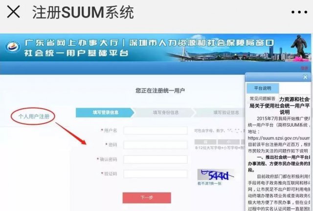 3、若無,點擊"新用戶注冊",進(jìn)入到深圳市人力資源和社會保障局社會統(tǒng)一用戶基礎(chǔ)平臺(https://suum.szsi.gov.cn/suum)。