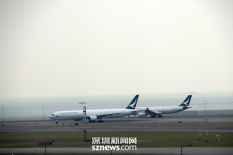 打開右手邊車窗,就可以看到香港機(jī)場(chǎng)的停機(jī)坪
