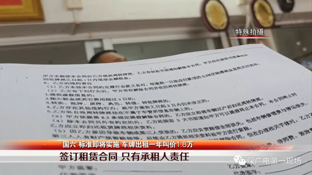 記者調(diào)查發(fā)現(xiàn),租深圳車牌成了很多外地車主,應(yīng)對“國六”標(biāo)準(zhǔn)落地的方法之一。所謂的租深圳牌,就是將名下的車登記在有深圳車牌指標(biāo),還沒有購車的人名下。