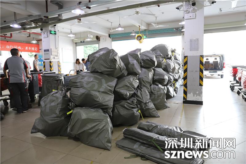 已經(jīng)分揀好的包裹打包好,等待運送到各收派件網(wǎng)點