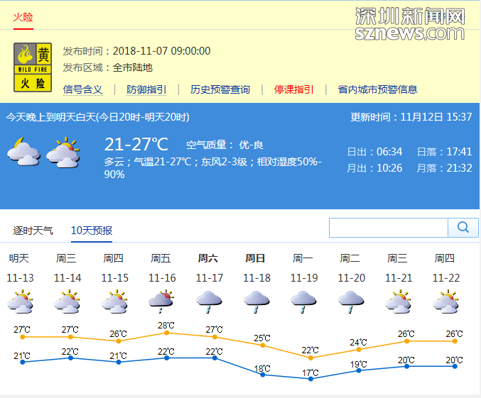 市氣象局發(fā)布未來十天天氣預(yù)報(數(shù)據(jù)更新于11月12日15時37分)