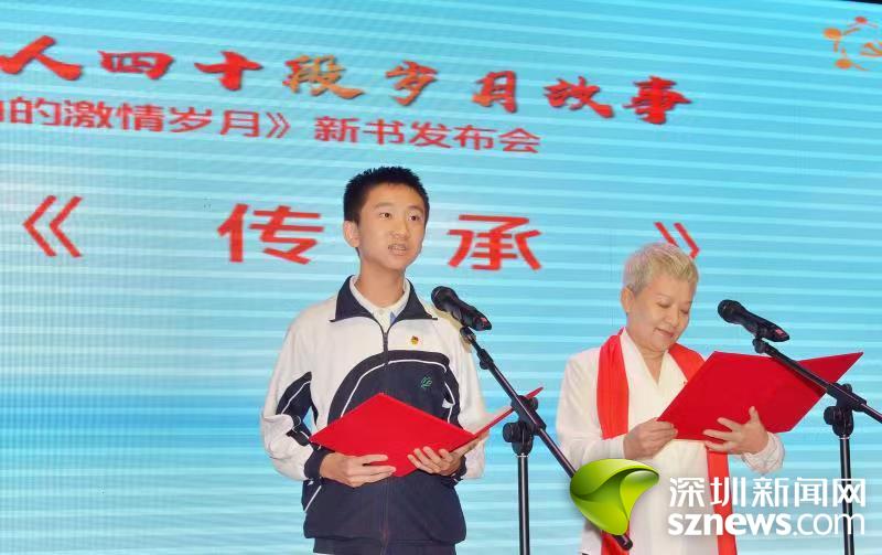 隨后,拓荒牛代表和育才中學(xué)學(xué)生代表共同朗誦由新書序言改編而來成的詩—《傳承》,朗誦聲情并茂,富有感染力,催人奮進又感人至深。