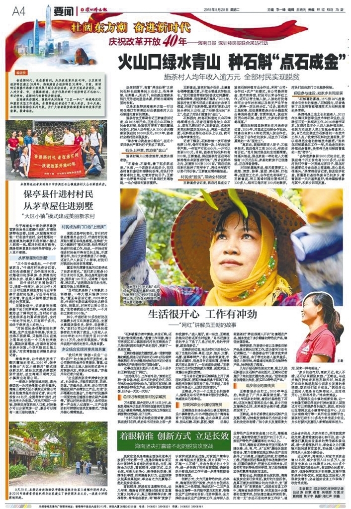 8月28日,《深圳特區(qū)報》推出了“壯闊東方潮奮進新時代”慶祝改革開放40年——《海南日報》《深圳特區(qū)報》聯(lián)合采訪行動首期報道。首期報道通過通訊、評論等形式,以點帶面,展示了海南全力打贏脫貧攻堅戰(zhàn)取得的成就。