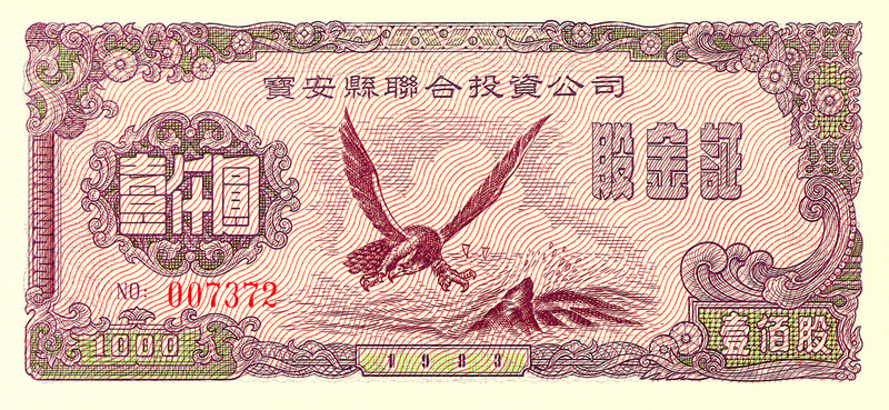 1983年,中國寶安集團(tuán)發(fā)行的新中國第一張股票。