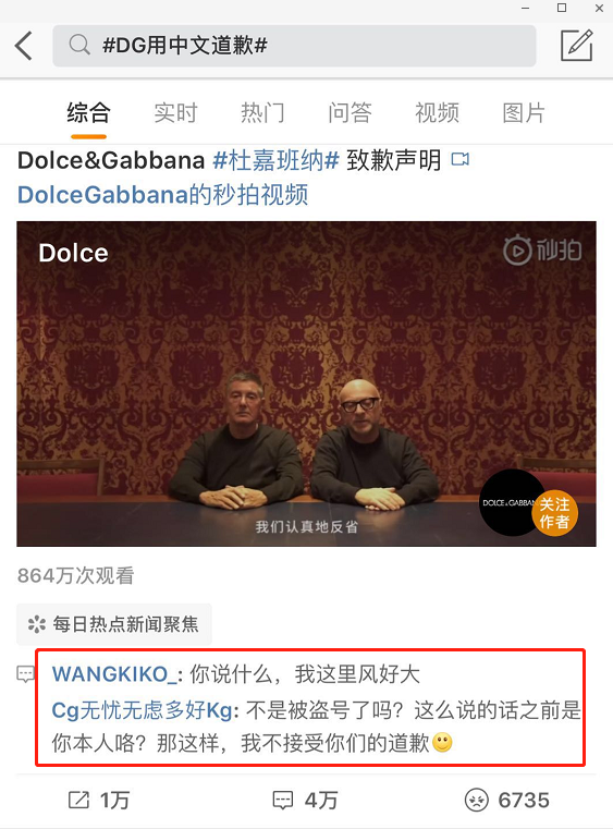 然后,D&G官方迅速出來回應(yīng)說:賬號被盜