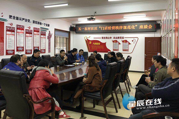 (商戶們共聚一堂,討論如何規(guī)范化門店經(jīng)營秩序。)