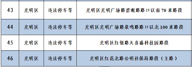 深圳新聞網(wǎng)12月10日訊(記者 何暢)據(jù)“深圳交警”微信公眾號消息,深圳56套“電子警察”新上線,其中46套專門查處違法停車,4套用于查處泥頭車違反禁行限行規(guī)定,6套用于查處沖紅燈、逆行、進(jìn)入導(dǎo)向車道變更車道等違法行為。56套“電子警察”具體分布位置如下: