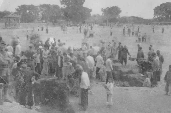 1936年,廈門(mén)大學(xué)文化陳列所對(duì)中山公園唐貞觀古墓群考古發(fā)掘現(xiàn)場(chǎng)(鯉城區(qū)檔案館 館藏)