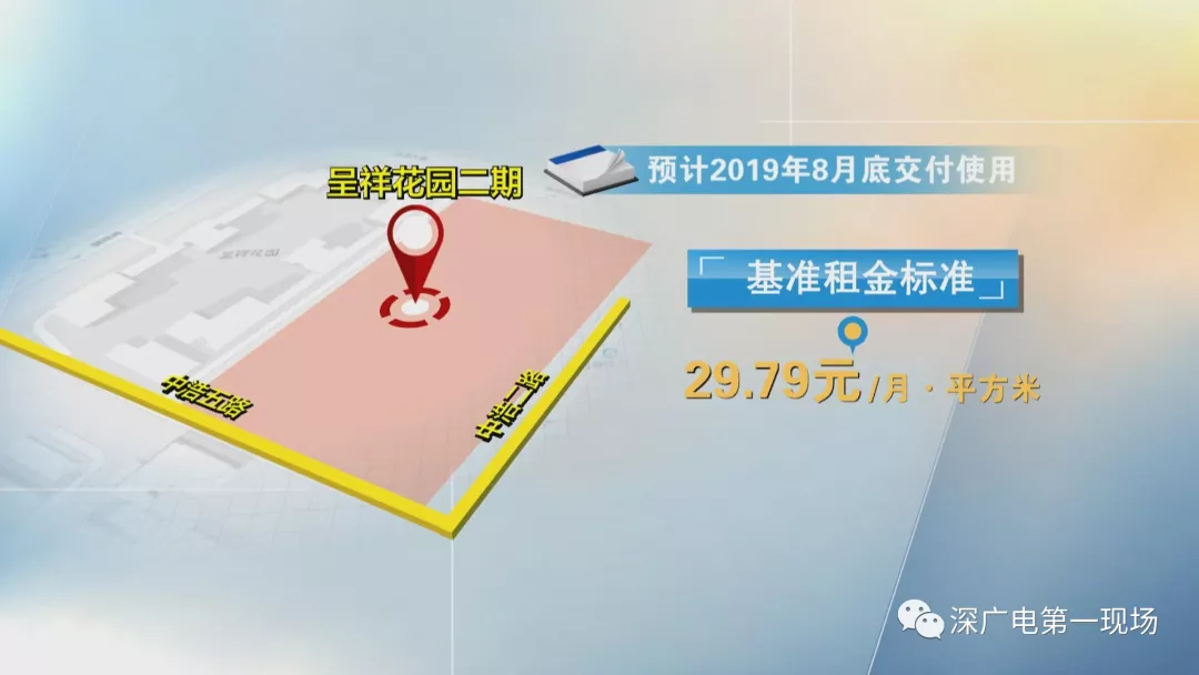 呈祥花園二期位于龍崗區(qū)坂田街道,中浩二路與中浩五路的交接處,預(yù)計(jì)2019年8月底交付使用。項(xiàng)目共有5棟住房,基準(zhǔn)租金標(biāo)準(zhǔn)暫定為每月每平方米29塊7毛9。