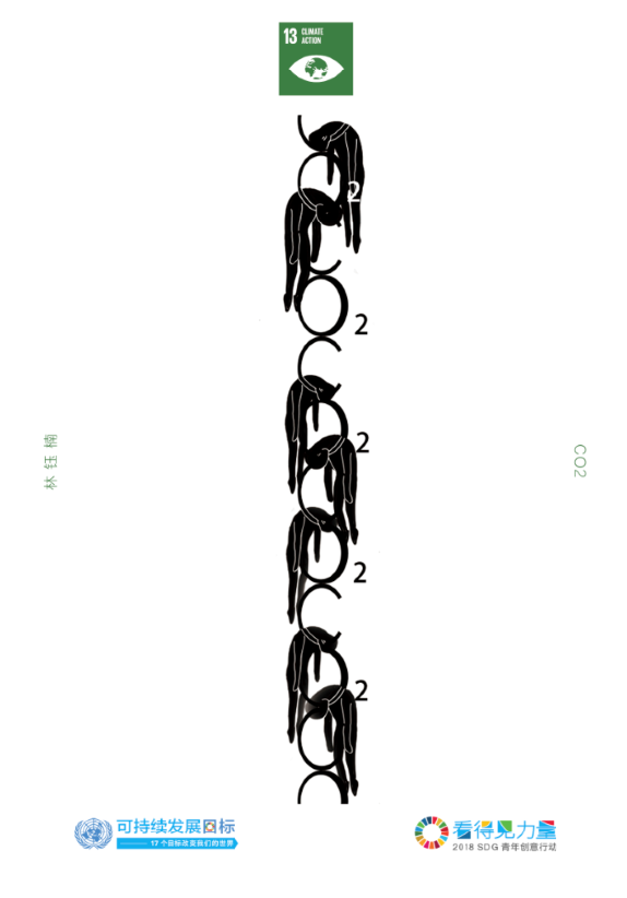 作品解釋 /海報(bào)的內(nèi)容是CO2形狀的繩索將人類吊起窒息而死的畫面以此呼吁人類重視二氧化碳問題帶來的危害。