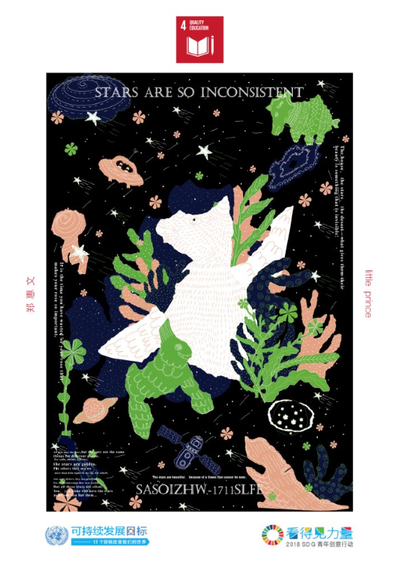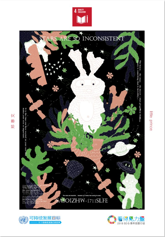 在2018年,項(xiàng)目以征集“SDG青年創(chuàng)意行動(dòng)”的方式,在近3個(gè)多月的征集時(shí)間里,共收到了來自5個(gè)國家和地區(qū)的79所大學(xué)的師生以及32家機(jī)構(gòu)/獨(dú)立設(shè)計(jì)師參與投稿的1062件(套)作品,作品類型也不再只是平面設(shè)計(jì),包括數(shù)字新媒體、建筑設(shè)計(jì)以及品牌策劃、交互設(shè)計(jì)軟件、網(wǎng)站搭建等多種表現(xiàn)形式的作品均。經(jīng)知名設(shè)計(jì)師張達(dá)利、黑一烊、宋博淵、鄧遠(yuǎn)健和社會(huì)創(chuàng)新專家馮曉近10個(gè)小時(shí)的三輪現(xiàn)場評審,共有1件(套)作品獲得“特別大獎(jiǎng)”,10件(套)作品獲得“最佳獎(jiǎng)”,101件(套)作品獲得“優(yōu)異獎(jiǎng)”。在評選和公示期之后,獲獎(jiǎng)名單已于12月初正式發(fā)布,系列活動(dòng)創(chuàng)意與可持續(xù)發(fā)展論壇和面向全球招募的獲獎(jiǎng)作品聯(lián)合策展計(jì)劃也即將開啟。