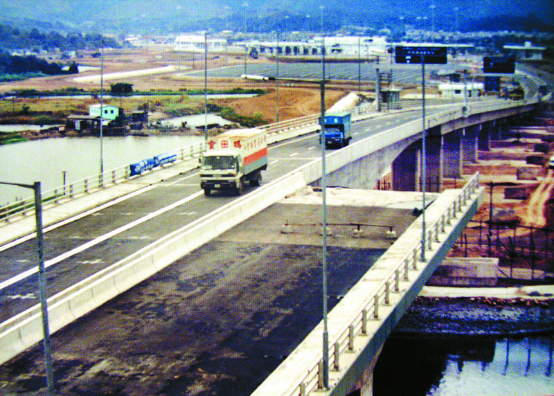 1989年12月26日皇崗口岸開通時(shí)的第一輛入境貨柜車,當(dāng)時(shí)落馬洲大橋只建成一半。黃國春攝