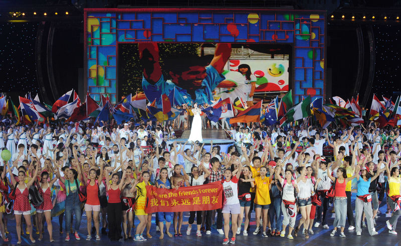 2011年8月23日,第26屆世界大學(xué)生夏季運(yùn)動(dòng)會(huì)閉幕式在深圳舉行。這是閉幕式上打出的“我們永遠(yuǎn)是朋友”的橫幅。